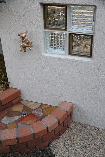 足元のレンガ造りの排水パンは、半楕円形の