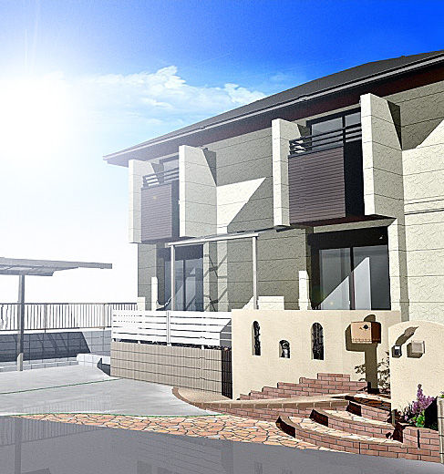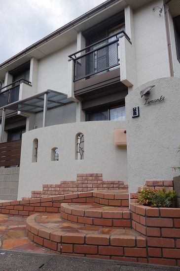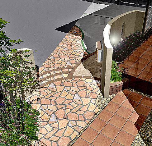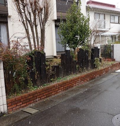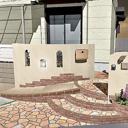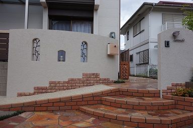 そして曲線仕上げの門壁の裏側には、花壇ス