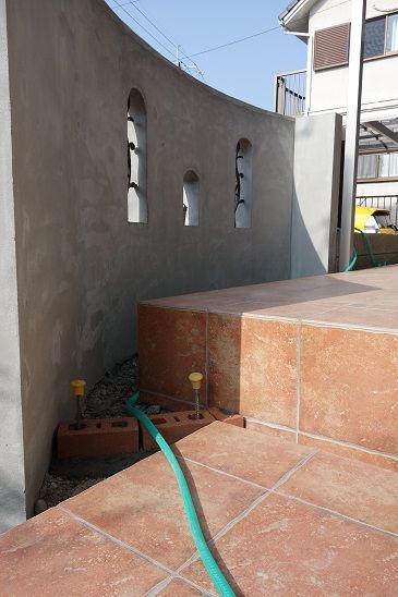 ペースとも上手く合体させた、タイル貼り仕上げ