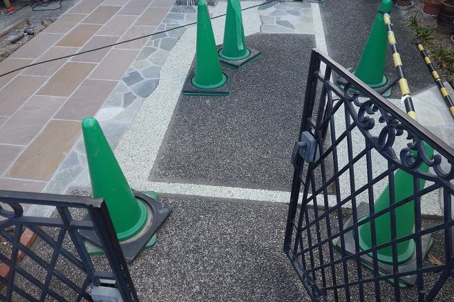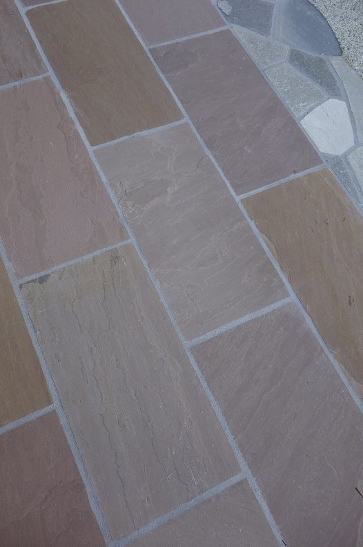 お庭の中央には御影石製の平板石材を、