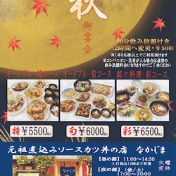 長いことブログを書かないでいました(;´∀`)秋用の宴会チラシが出来ましたので宜しくお願い致しますm(_ _)mご報告まで! ...