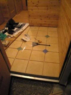 なのでナカオでんき定休日の今日はまだ仕上がっていない内玄関のタイル張りをやり始めました。