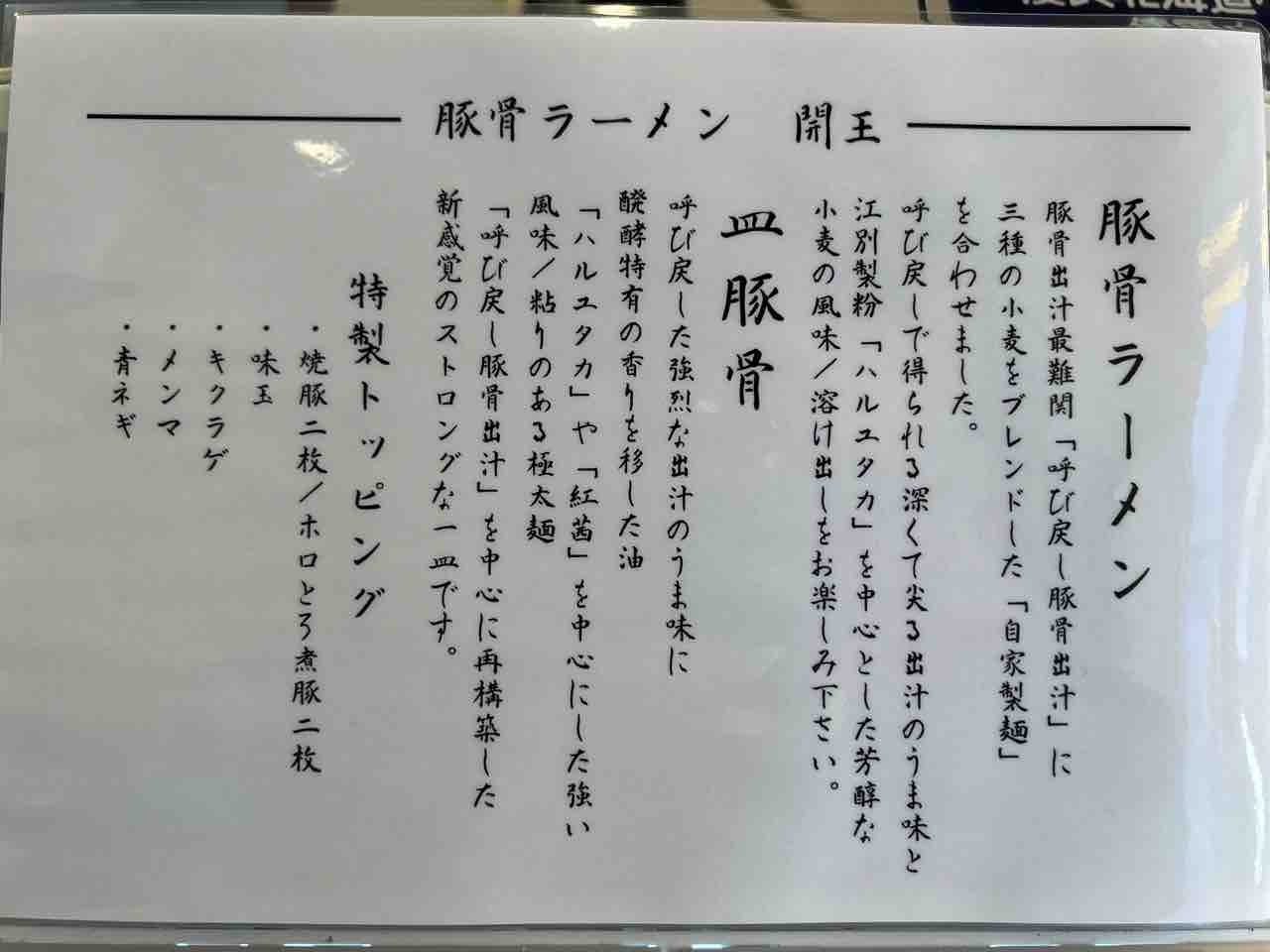 『東池袋大勝軒 八王子店』跡地にオープンした『豚骨ラーメン 開王』へ