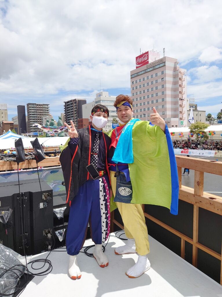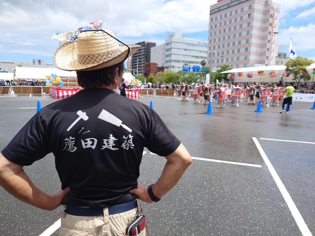 雨が降ったり止んだりの高知駅前演舞場。