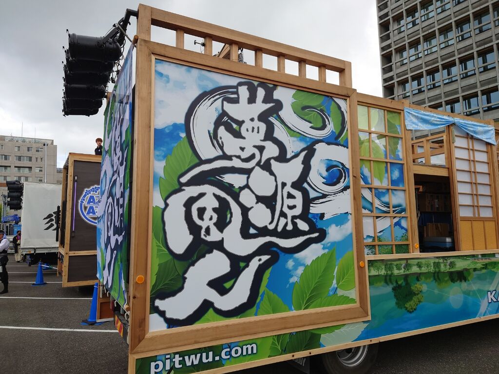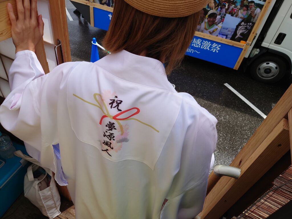 雨の止み間に演舞を楽しむ地方車の運転手さん。