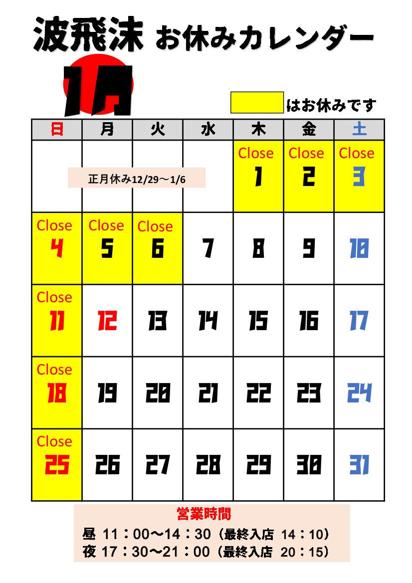2月のお休みが確定したのでお知らせします!