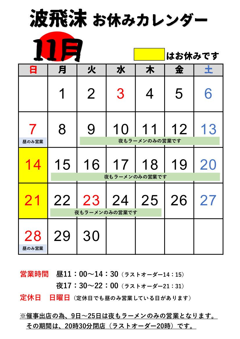 定休日でもお昼のみ営業している日があるのでご注意ください!