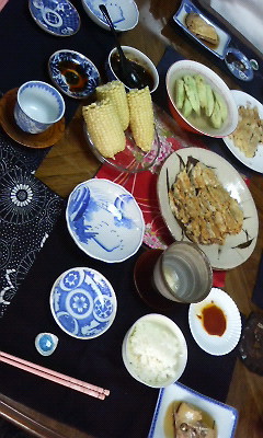 一枚目の写真は、イシちゃんと一緒に作った料理の一部。イシちゃん、トウモロコシ、手で、ボキッて折ってた(笑)