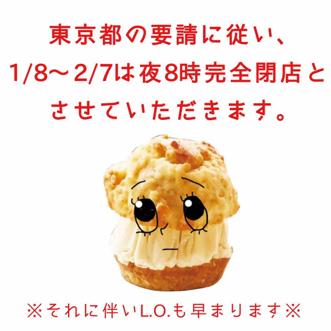 というわけで、引き続き営業時間短縮要請に従い、1月8日から20時完全閉店(それに伴いL.O.も早まります)となっております。