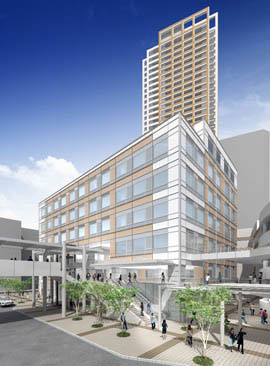 再開発地区に合わせて建設し、