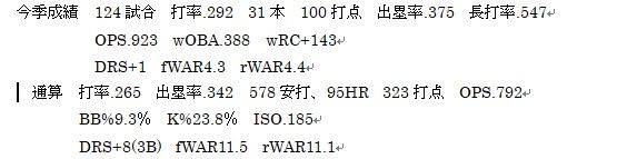 長いシーズンのトータルで結果を出すタイプの選手なので、仕方ないと解釈している。