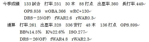 BB%は13.3%と前年比5.2%も向上しISOも.200に乗せた。