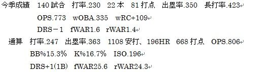 更に三振率はハワードの通算28.2%(30%超えの年もあった)に対してホスキンスは22.6%と、打席でのアプローチはかなり違う。