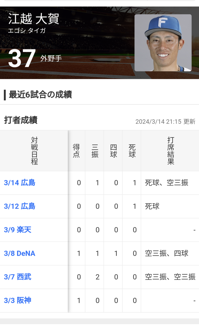 2024年03月15日 江越大賀とかいうウホウホ三振マン 1: それでも動く名無し 2024/03/14(木) 21:29:01.77 ID:i+1oZ3BL0Pi なんやこいつ 続きを読む タグ :#江越大賀