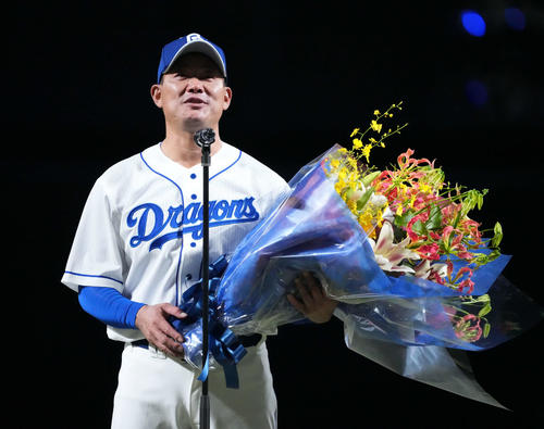 岡林は「ベンチから『右中間寄り』『前へ』と福留さんにアドバイスをもらった。本当に、ドンピシャで落下点に打球がきた。