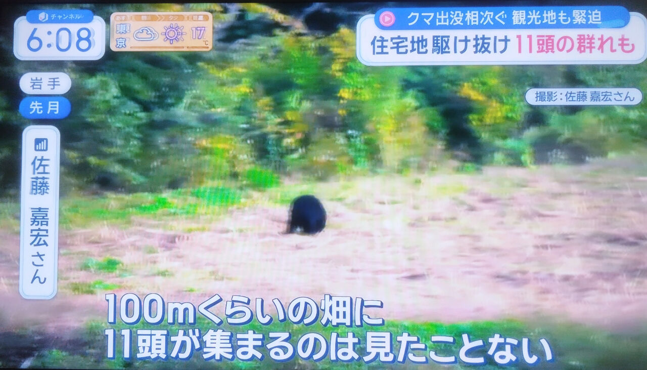岩手そば畑一カ所になんとクマ11頭登場‼️もうドンドンクマ出没エスカレート毎日ように被害者が出ている。特に早朝は注意すべき。市街地への出没も増えつつある何か効率の良い対策はないものだろうか⁉️ https://t.co/GSzpLlqg1w pic.twitter.com/UdzBDvW38X