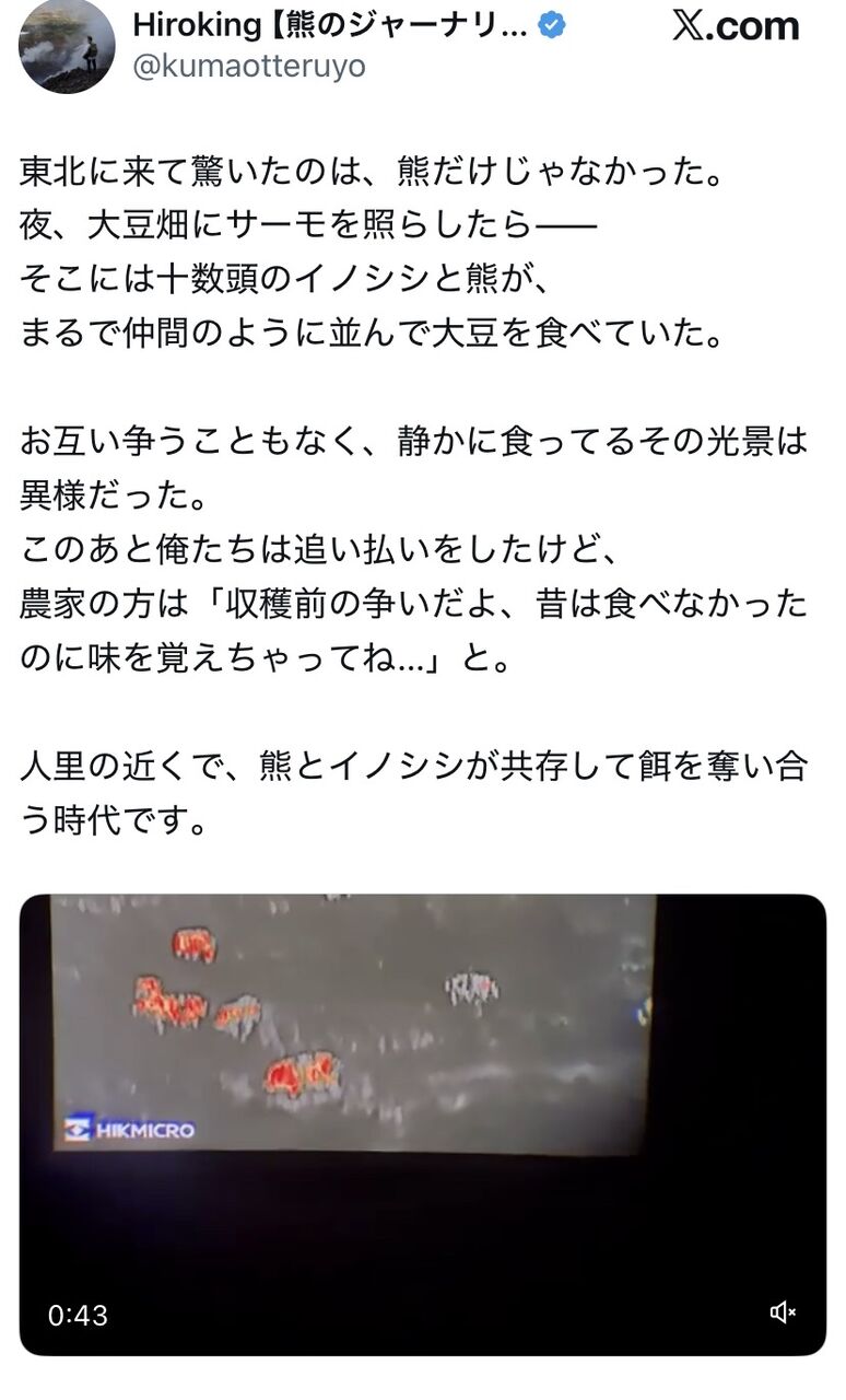 あとシカと違って攻撃性あるから中途半端に刺激したらクマでも割とヤバい