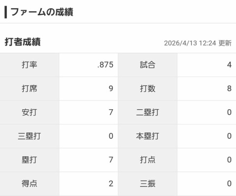 2軍の成績も育成選手以下