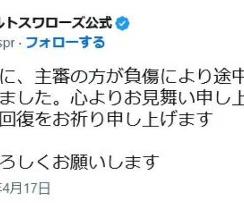 歩いてベンチに戻り、一度は裏に下がったが、再びグラウンドに姿を現して、出場を続行した。