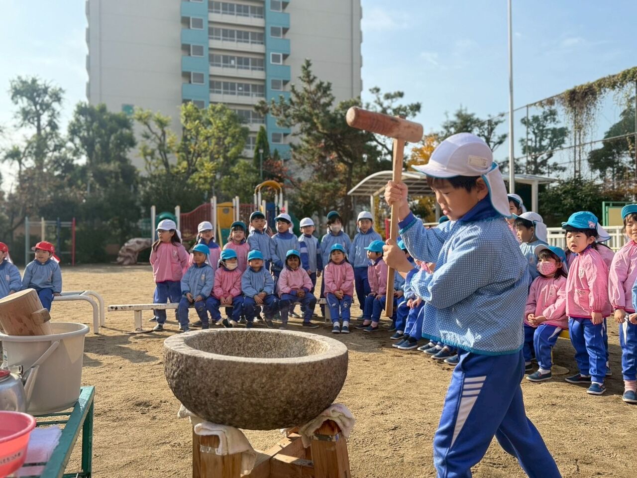 「よいしょ」という掛け声のもと餅つきをすることができました✨✨