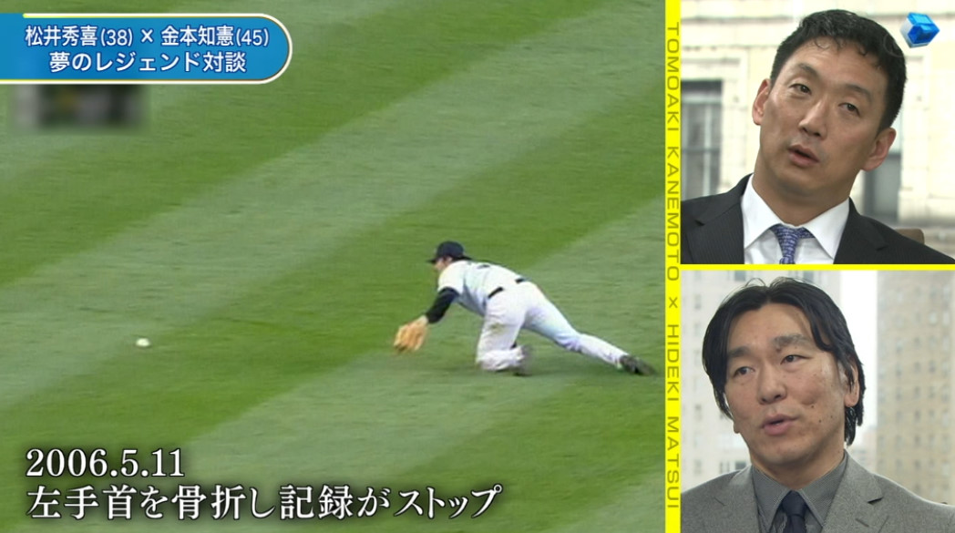 金本「10m投げるのも肉離れとかしてたから、痛みから解放されるというホッとしたのと、諦めと、連続試合は潮時やと思ったね」