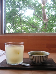 私は、冷たい柚子茶と抹茶のクレームブリュレ