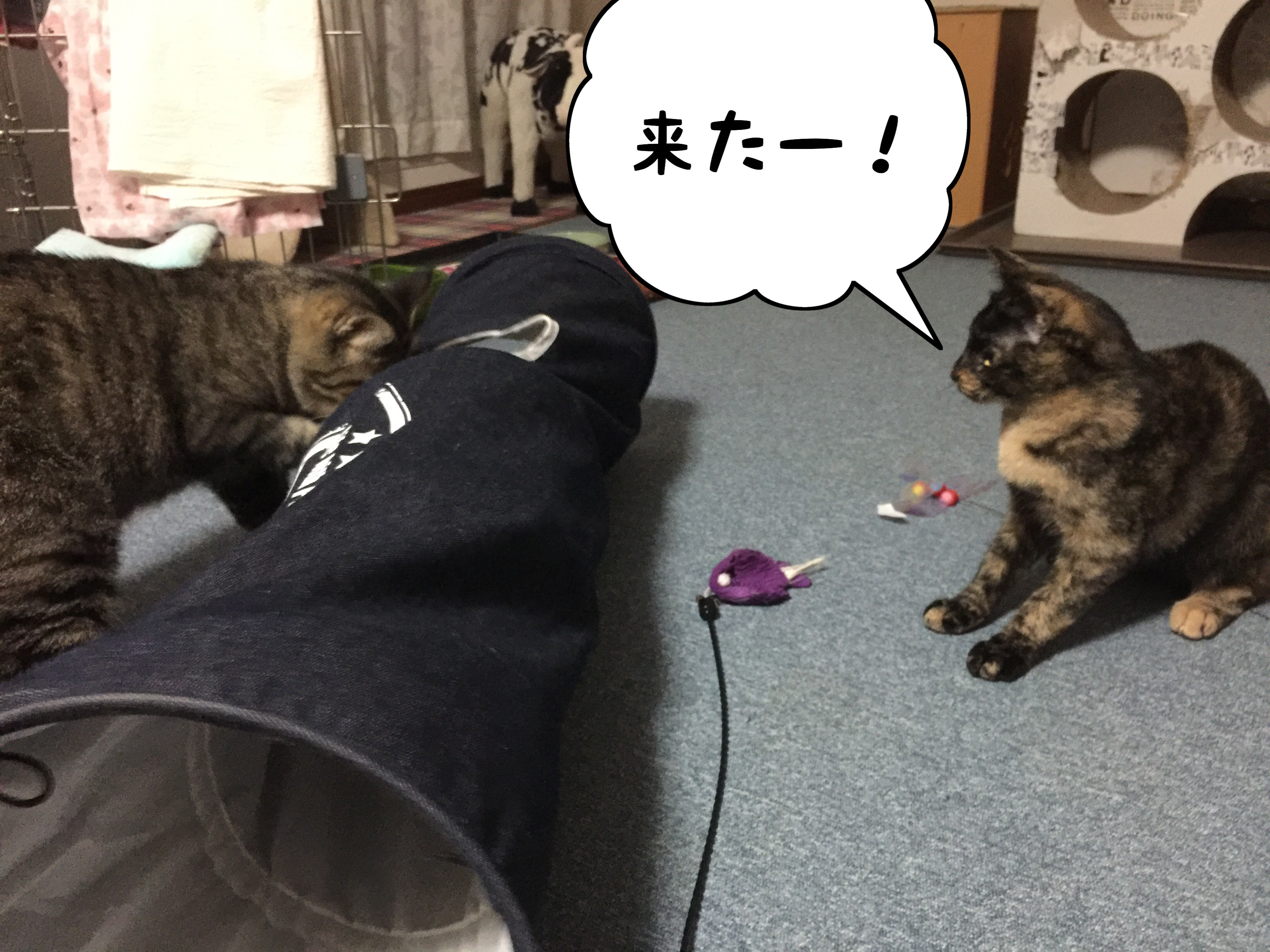 毎晩毎晩、オカンたまをさんと バンビ仔馬きなこと猫ジャラシを巡っての戦いが繰り広げられているのですが、もう たまをさんが 諦める事が多かったんですけどね…何や昨晩は たまをさんえらいエキサイトしとりました( ゚д゚)