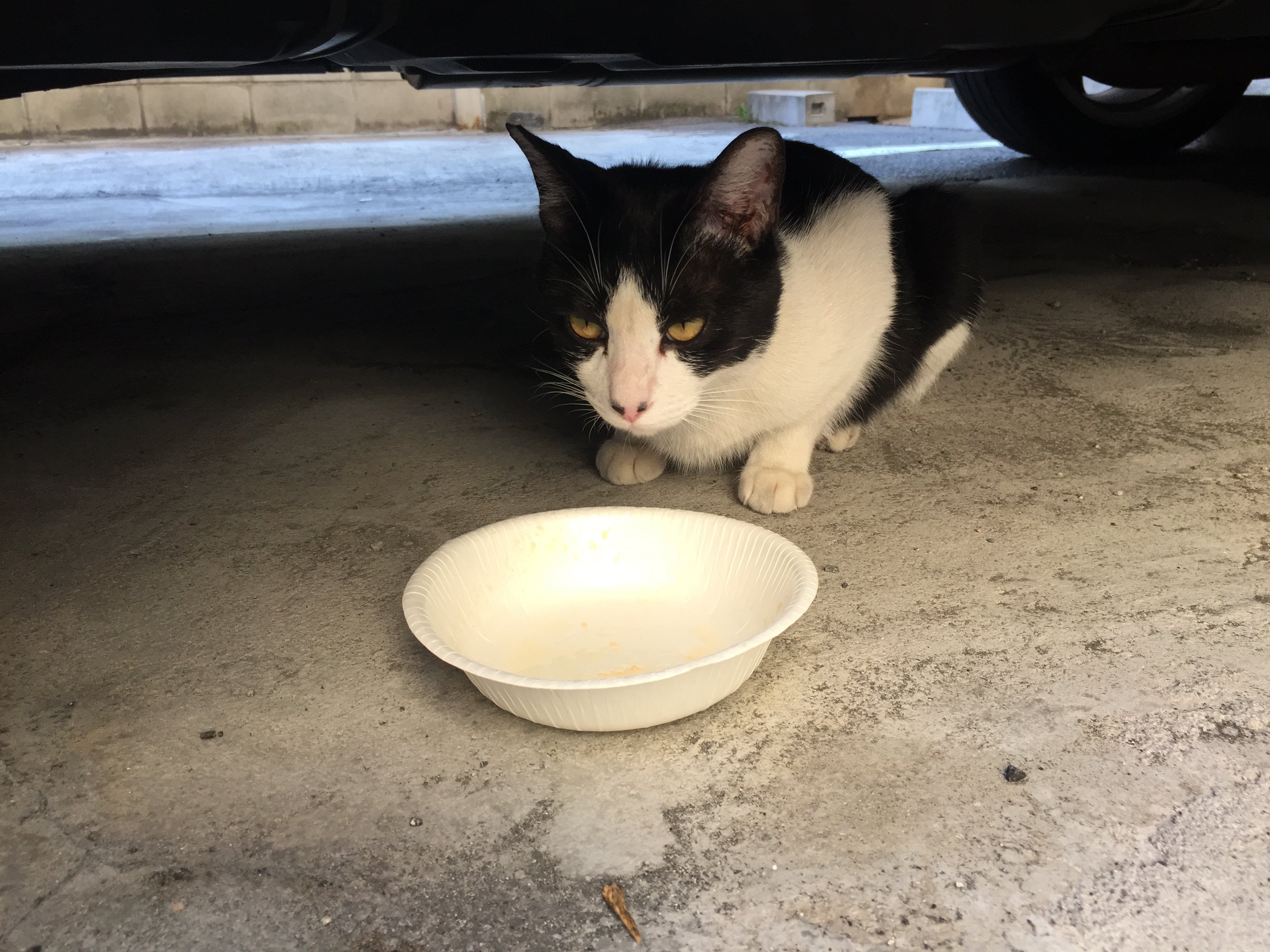 仕方なく…チュールを混ぜて、またまた車の下に入って行った さぶやんを追いかける( ´△`)
