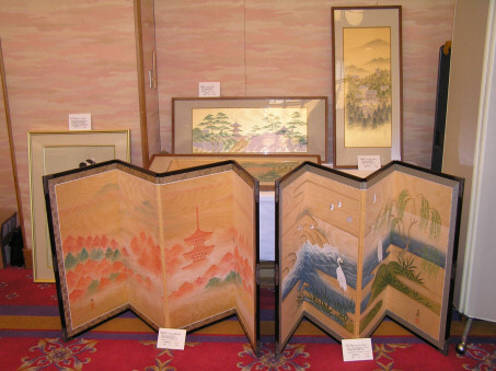 丸山応挙のおしどり額3万円が1万円、清水公照師の色紙2.5万円が1.5万円、ワイン一本3万円が1万円、ゴルフバック2万円が1万円ほどで落札されていた。