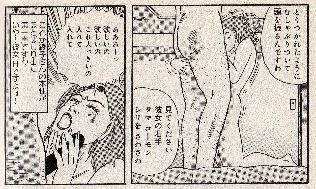 「取り憑かれたようにむしゃぶりついて、頭を振るんですわ。見てください。彼女のうしろに廻した右手。タマ、コ―モン、シリをさわさわ」