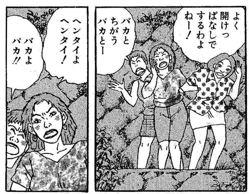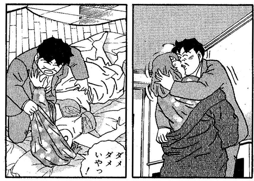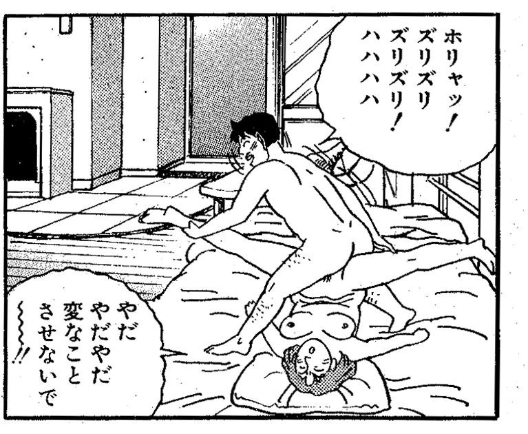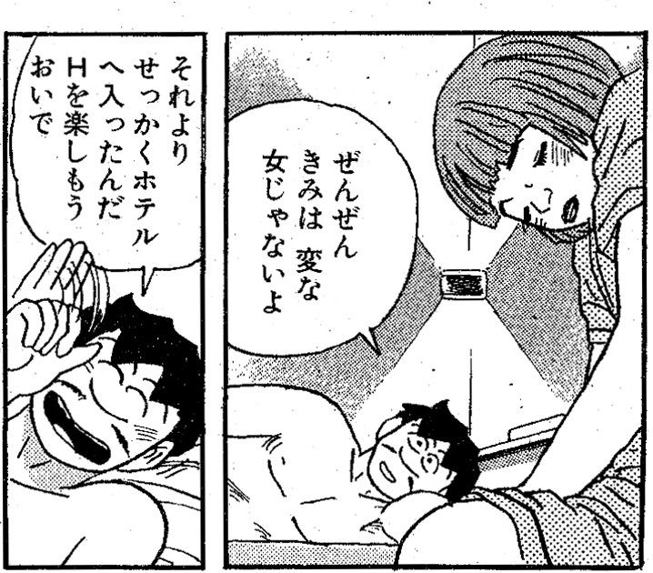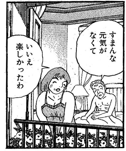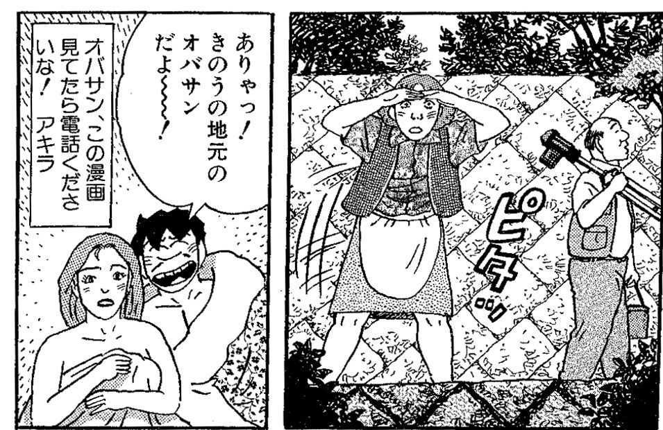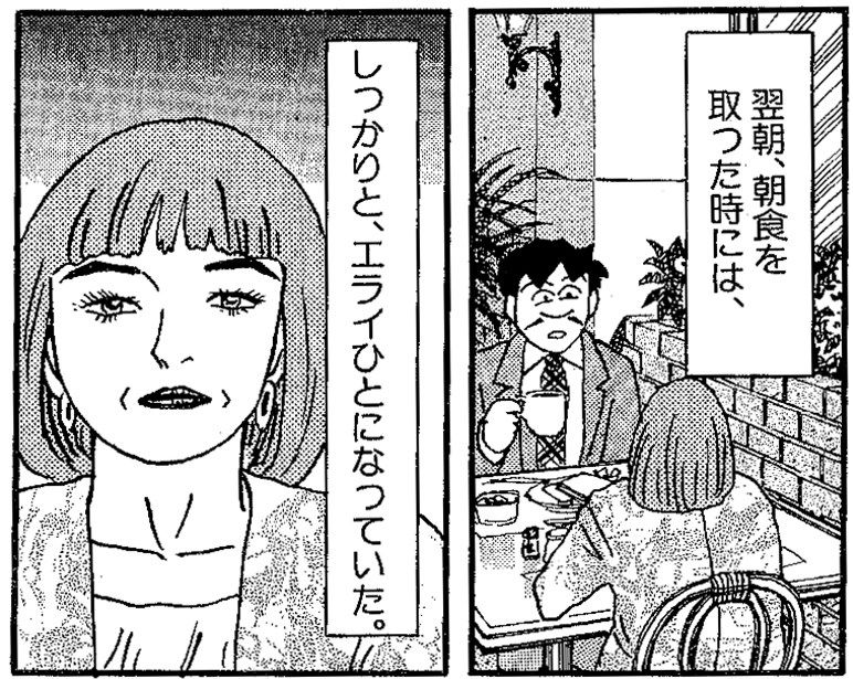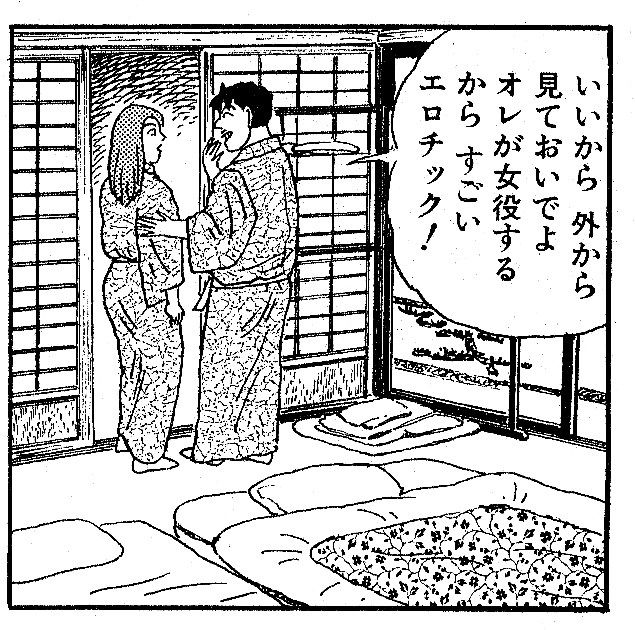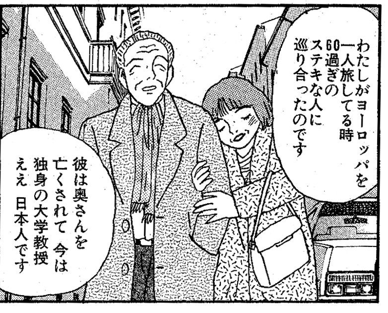 これは、彼が言うには“わたしみたいなハゲオヤジが女房と歩いていると振り返られる、アハハハ”という、彼の思いを漫画の冒頭に持ってきてあります。