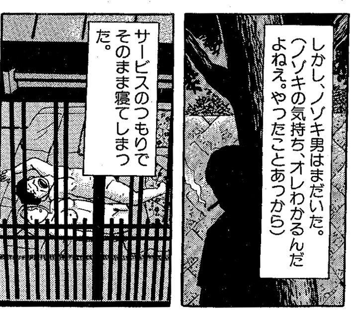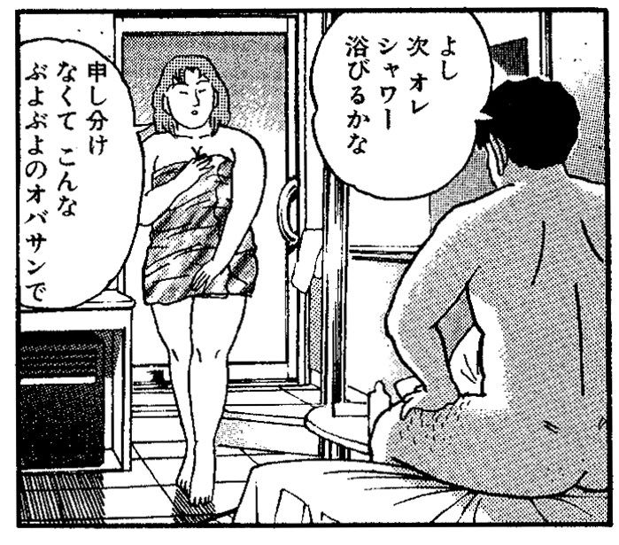 漫画の出だしのところで、ハゲた彼のうしろ姿をことさら強調してある。