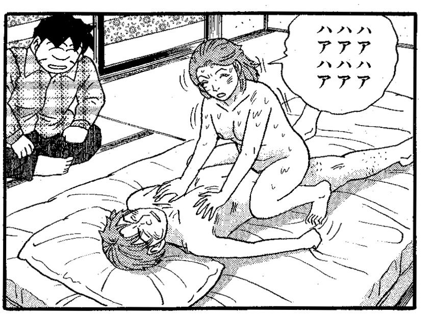 ヤスコさん夫婦の家。畳の間の布団の上で二人はセックスしている。