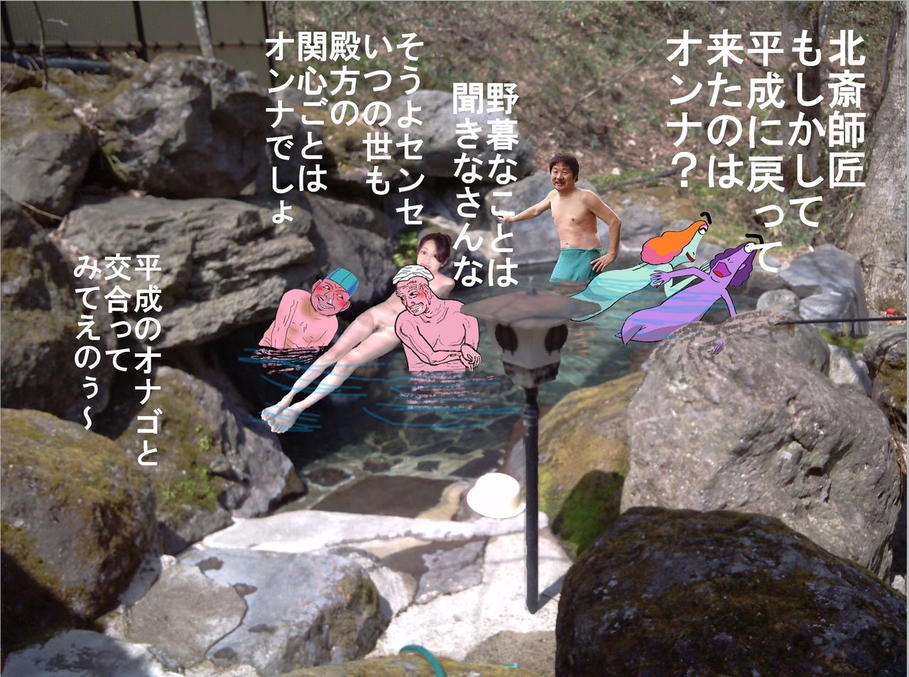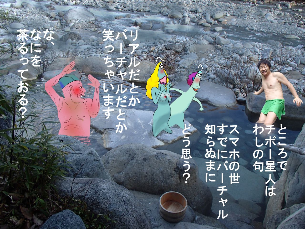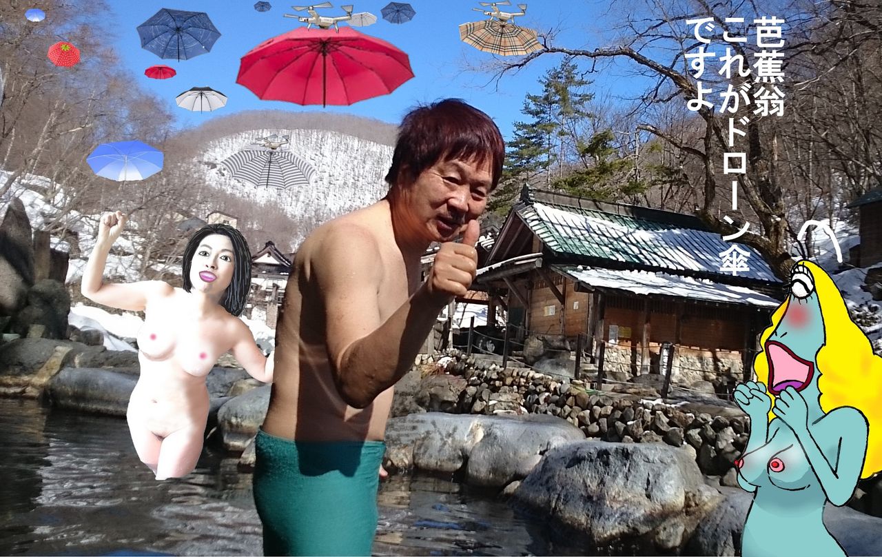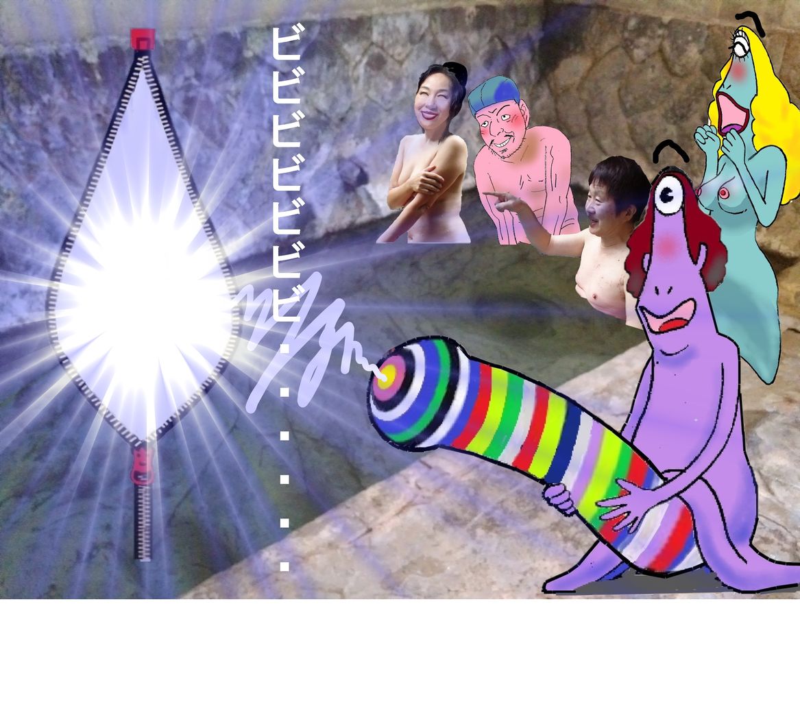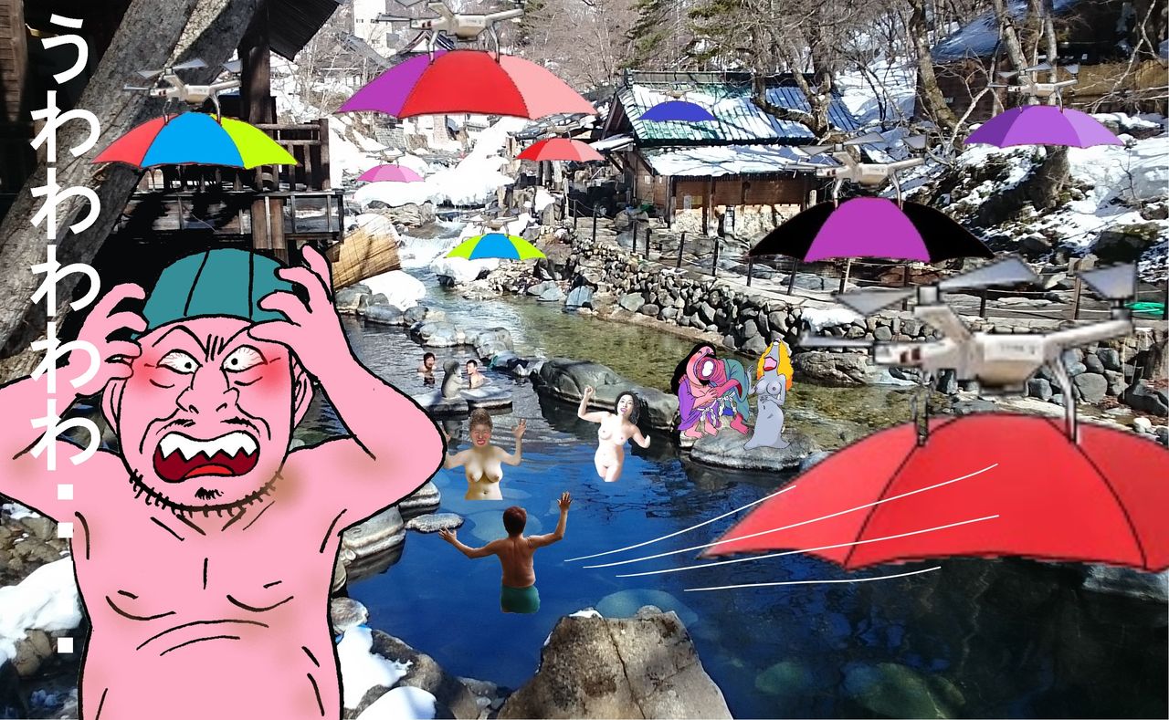 異星人・チボー星のやつら・ヒフーとヨーヨたちを日本全国の温泉にワシが案内するという設定で、すこし気を抜いて気楽にコラージュを描いていきます。