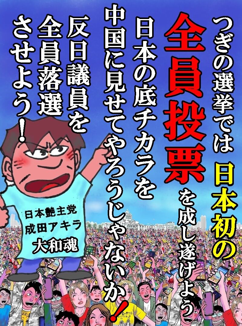 日本を救うために、成田アキラのネット政党「日本艶主党」のフォロワー(党員)を増やして、来たる選挙で「反日議員」をすべて落選させたいのです。よろしくお願い致します!!