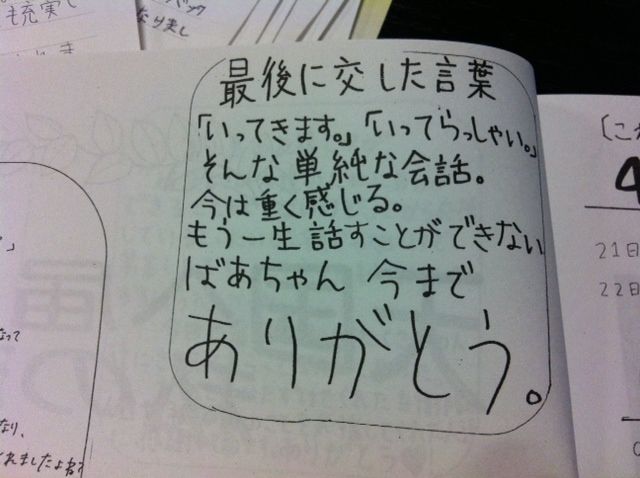 その後の人とのつながりを通じて、感じたことがつづられいます。
