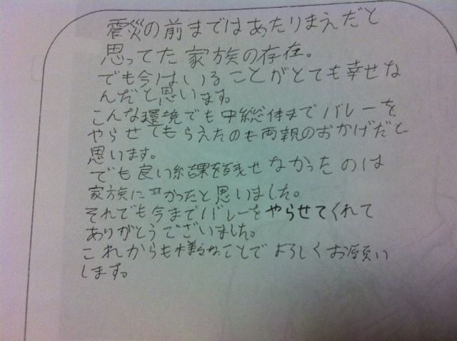 3年生全員がこの震災で起きたこと、感じたことなどを