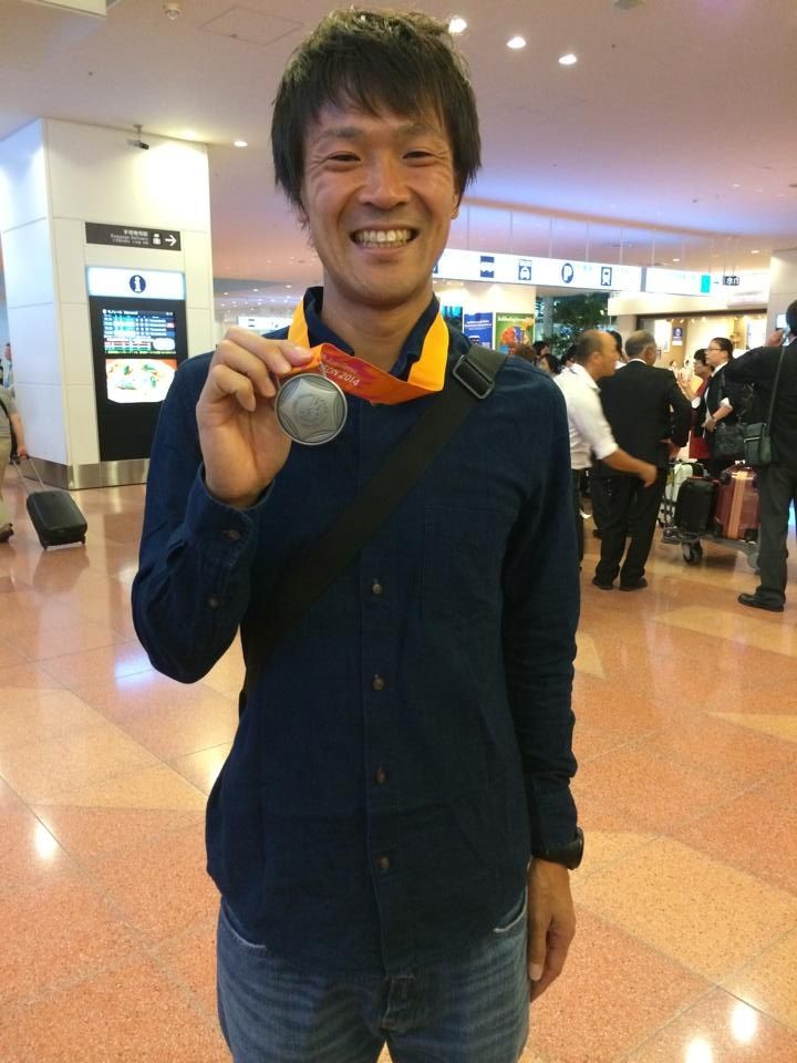 羽田空港に着くと、到着ゲートにはナント篠原選手の姿が!