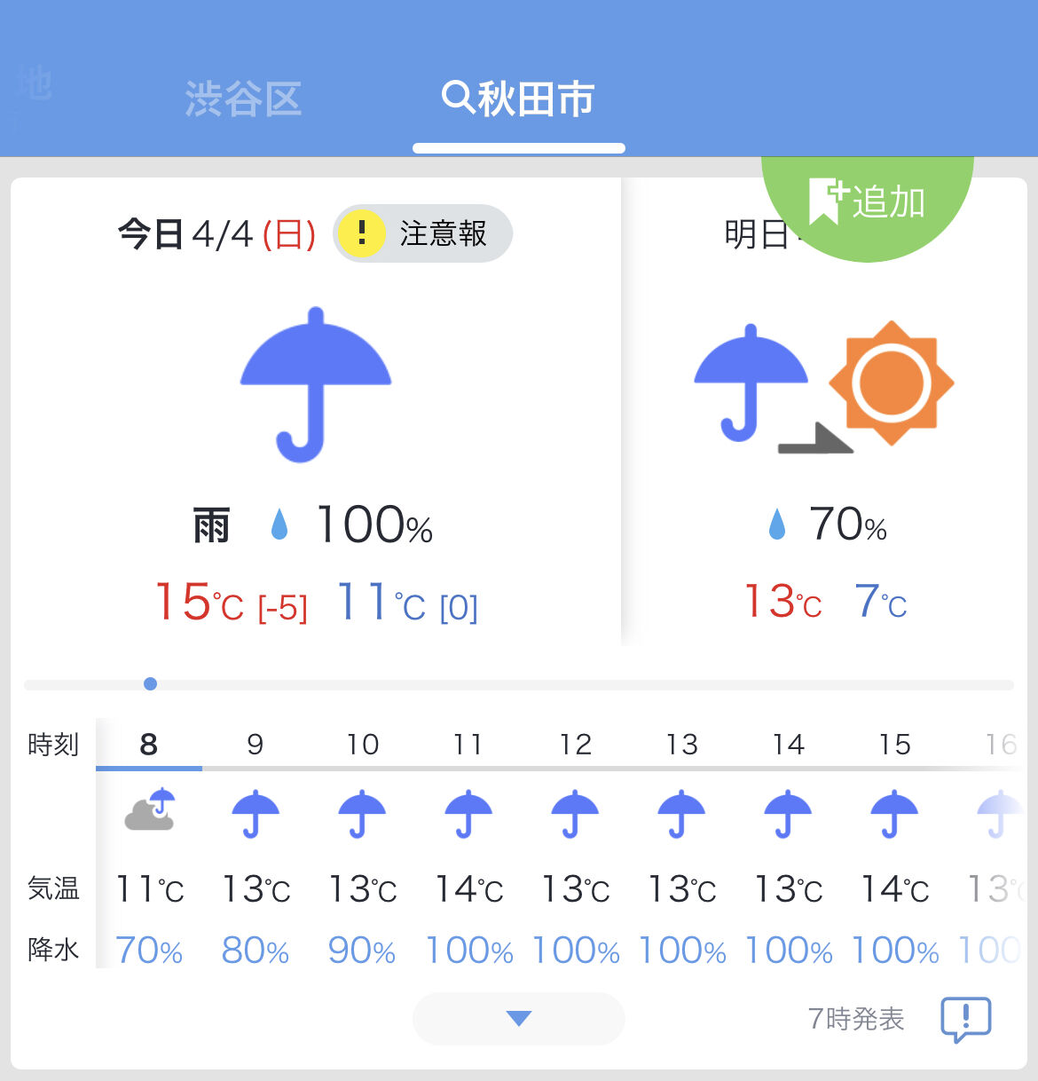 なんと、明日の秋田市は