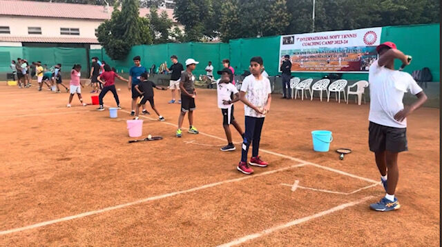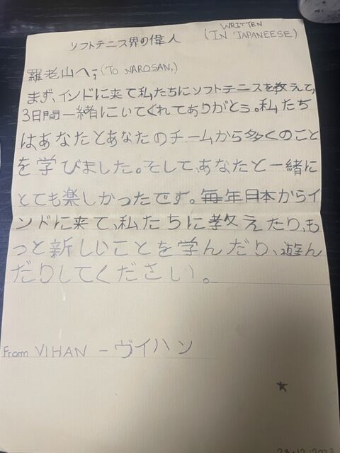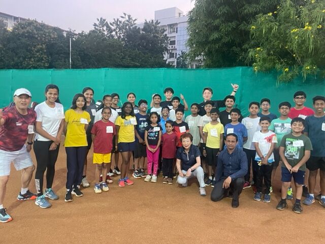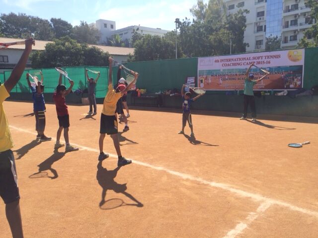 滞在中、インドのソフトテニスに触れ