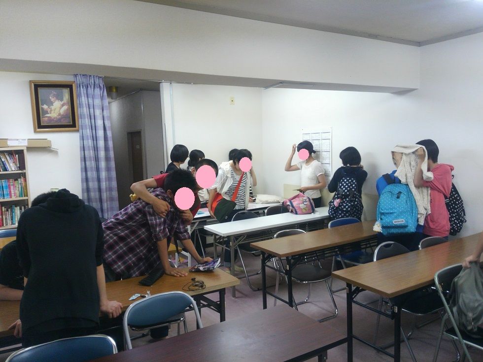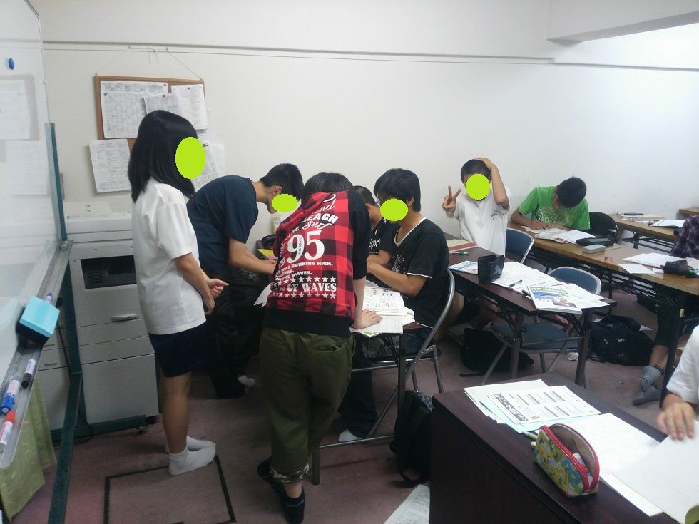 2013年06月27日 テスト対策 昨日(26日)は中2でした。塾開始2時間前から集まったS中もみなさん。長時間ホントによくがんばりました。勉強終了後、男子たちが明日の美術のテスト対策。美術の得意なMさんの指導を受ける男子たちです。今日(27日)は中3です。