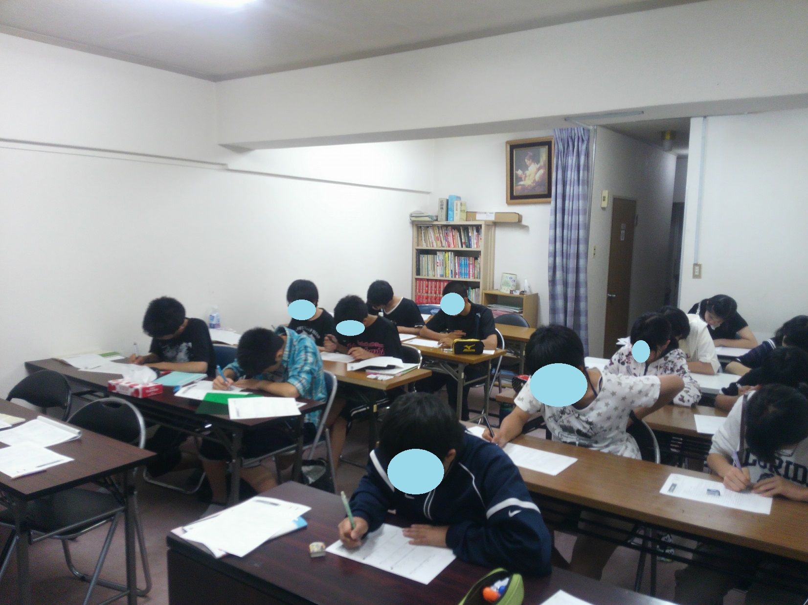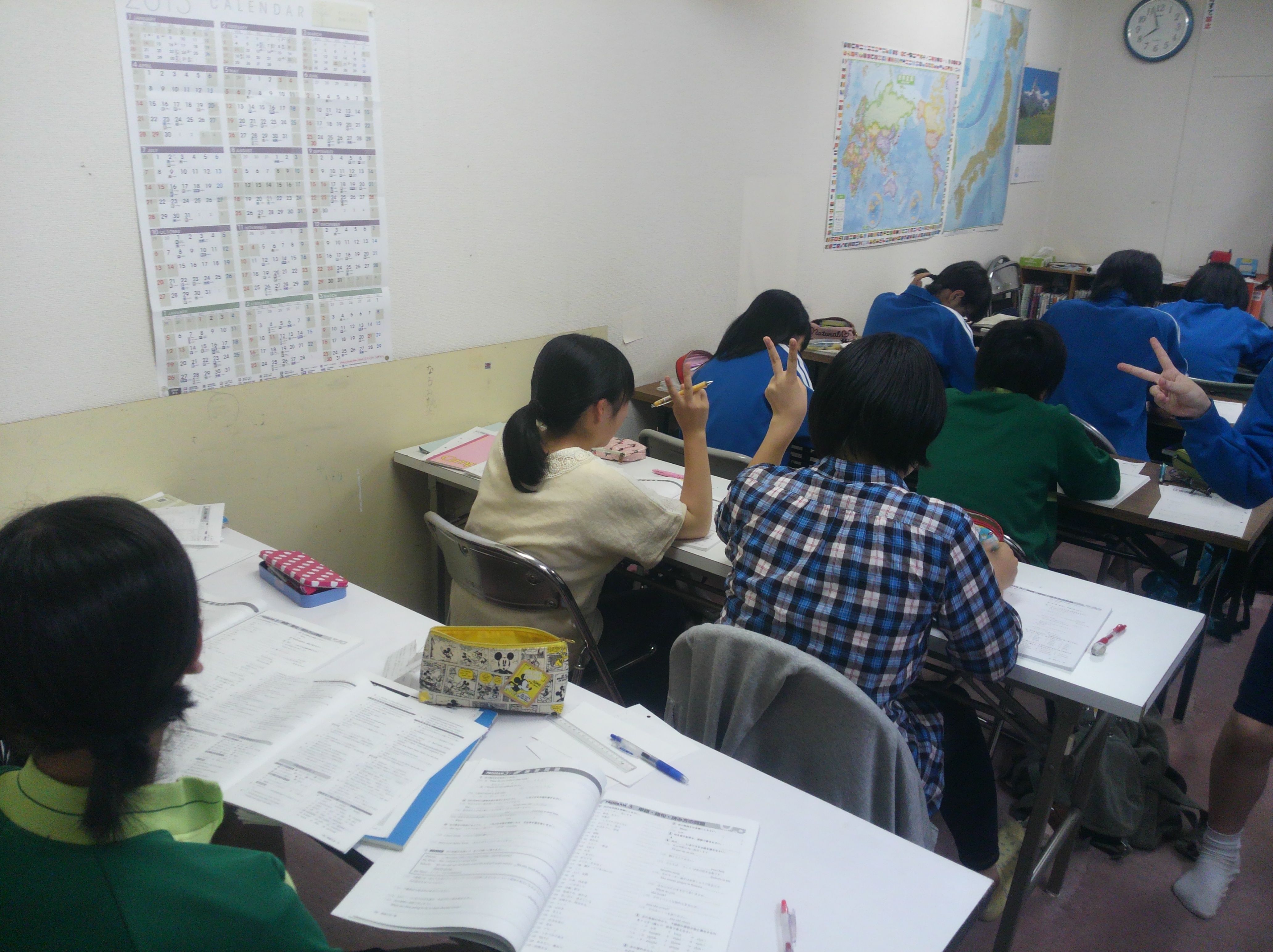 2013年06月23日 やっと 昨日(22日)は中2でした。成長著しい中2クラスですが、その様子を撮ろうとすると、誰かが必ず気づいておどけて(?)くれます。でも今日はそのままの様子が撮れました!!今日(23日)はテスト直前組の勉強会をします。15:00~18:30