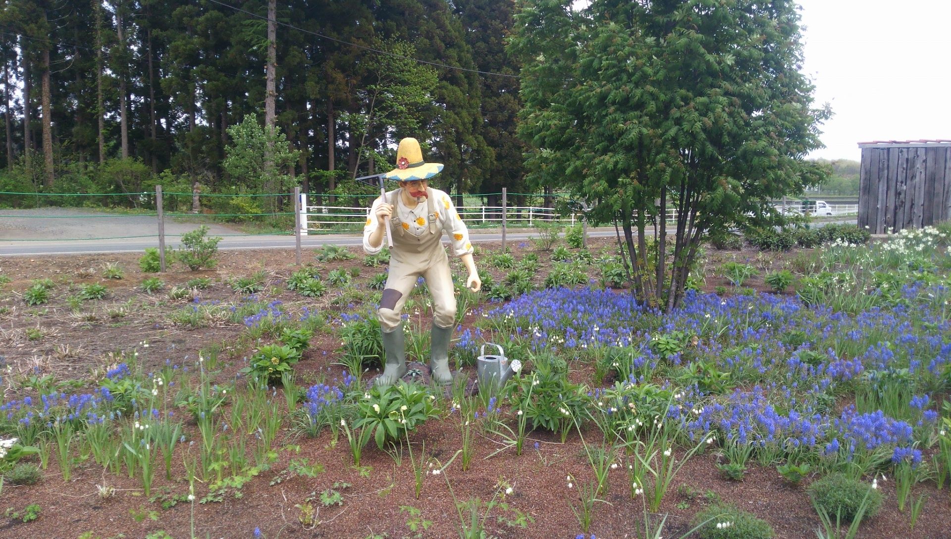 2013年06月21日 案山子 昨日(20日)は中3でした。中総体では、学校を超えて名が広まっている名プレイヤーの面々がいるようです。そんな話題がひとしきり。先日、『花工房らら倶楽部』で、こんな素敵な案山子を見ました。今日(21日)は中1です。
