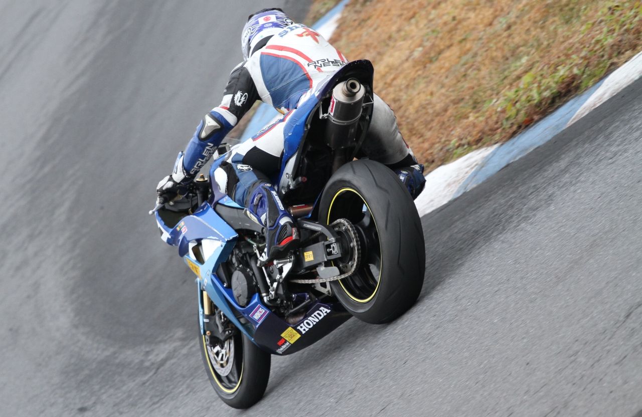 ちなみに1本目の走行時間に、各ライダーのタイヤ温度を計測したところ、ウォーマーを使用している人でも走行終了時のタイヤ表面温度は、リヤの右側で27℃、左側で22℃、フロントに至っては右側で17℃、左側は14℃しかなかった。