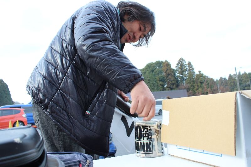 すでに朝の埼京線状態となっている募金箱。年明けには総額を発表できる予定。もちろん梨本塾が責任を持ってこの全額を各被災地区の災害対策本部へ送金。