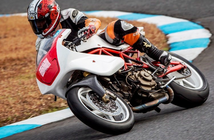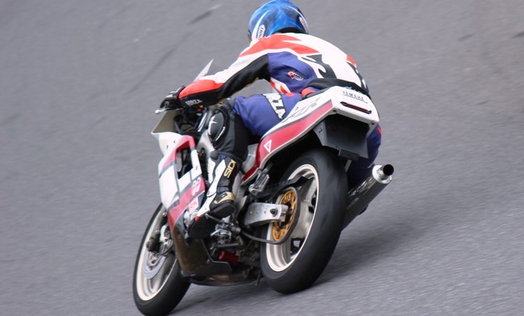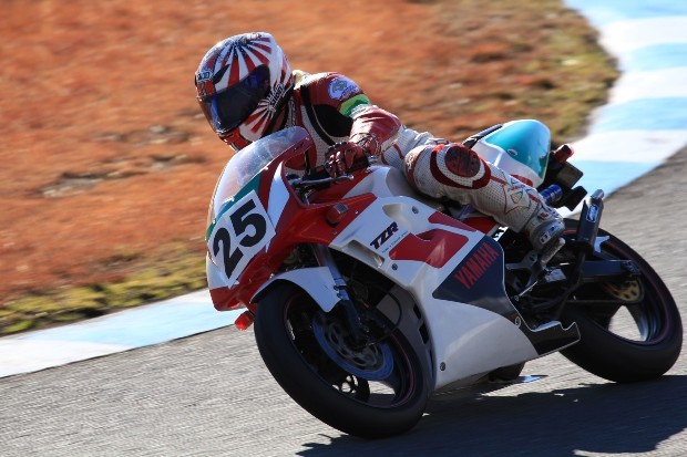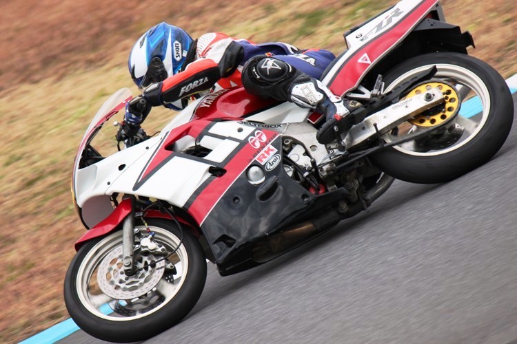 2番手には磯山TZR250Rでタイムは28秒531、タイヤはフロントにSC1、リヤにV2のSC1を装着。