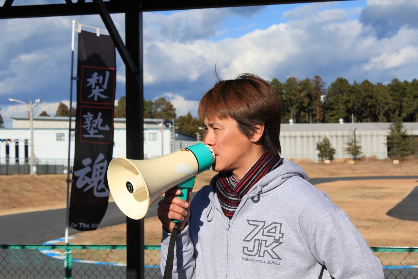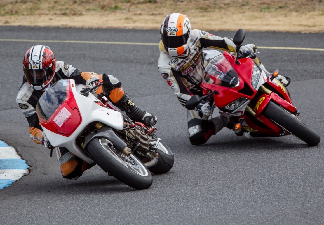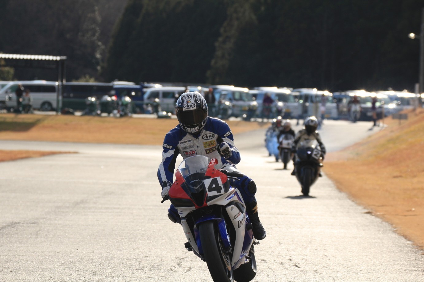 2013年度最終戦、梨本塾チャンピオンズカップのタイムアタックが始まった。午前に1名が転倒してしまい、マシン修復が困難となってしまったために全40台が出走してしのぎを削り合う。
