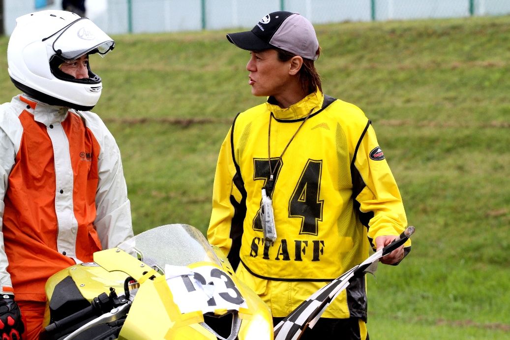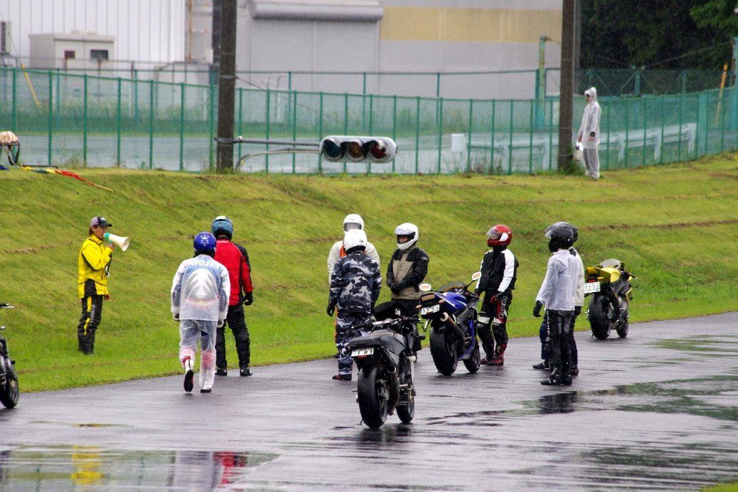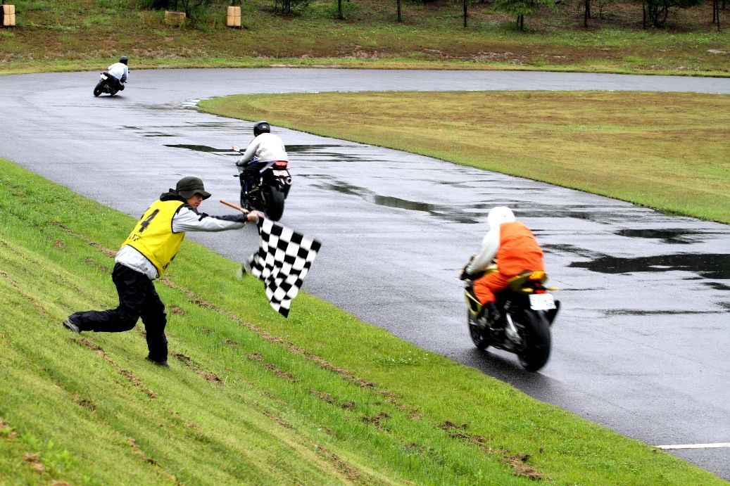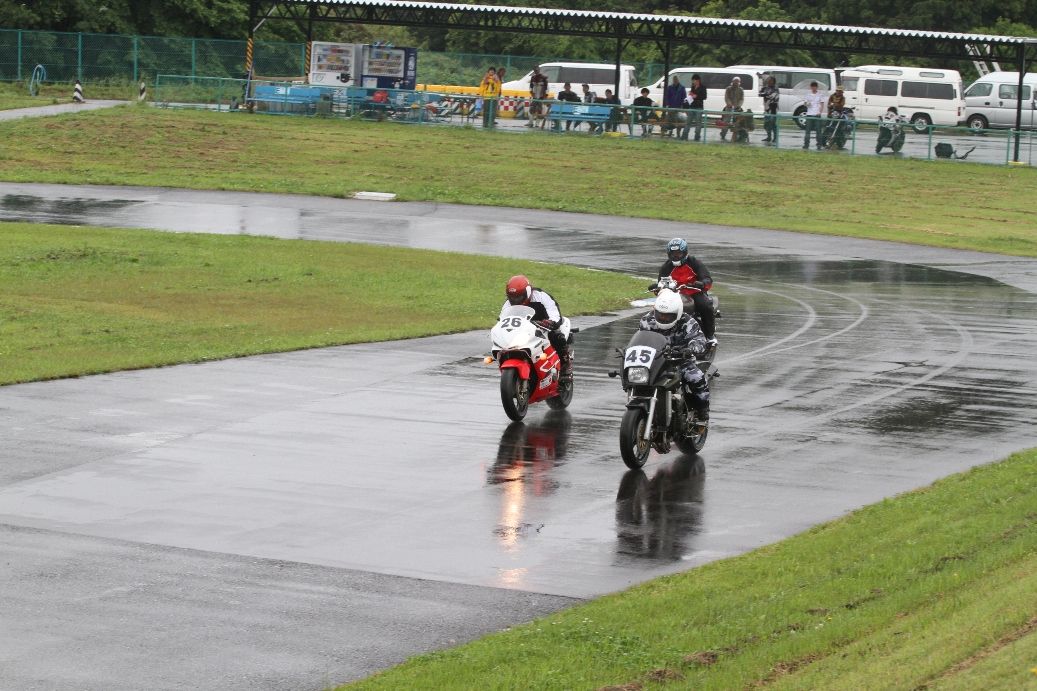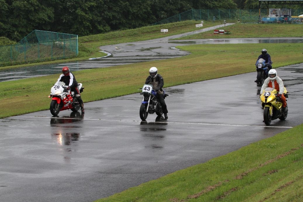 池原を先頭に、二番手に上がった愛知より参加の山田、皆藤、そして午前は一切走らなかったためにタイムアタックでは2クラスダウンとなった初参加の芝崎GSXR1000K5が四番手。