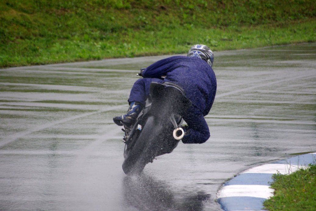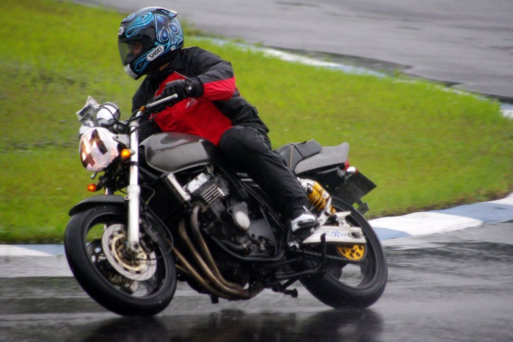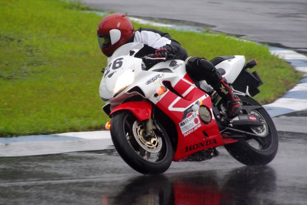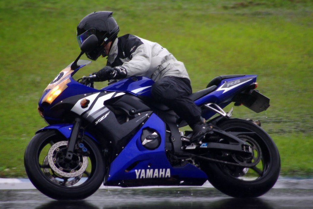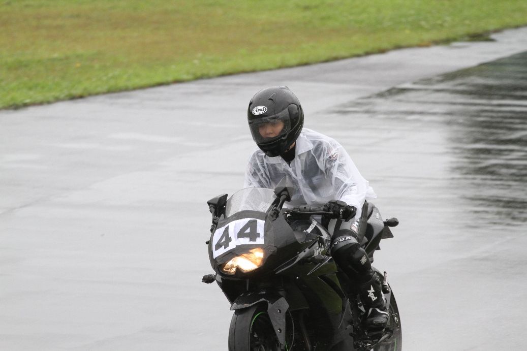 今回はややペースが上がらず苦戦している上尾R6。久しぶりのレイン走行に戸惑っている。