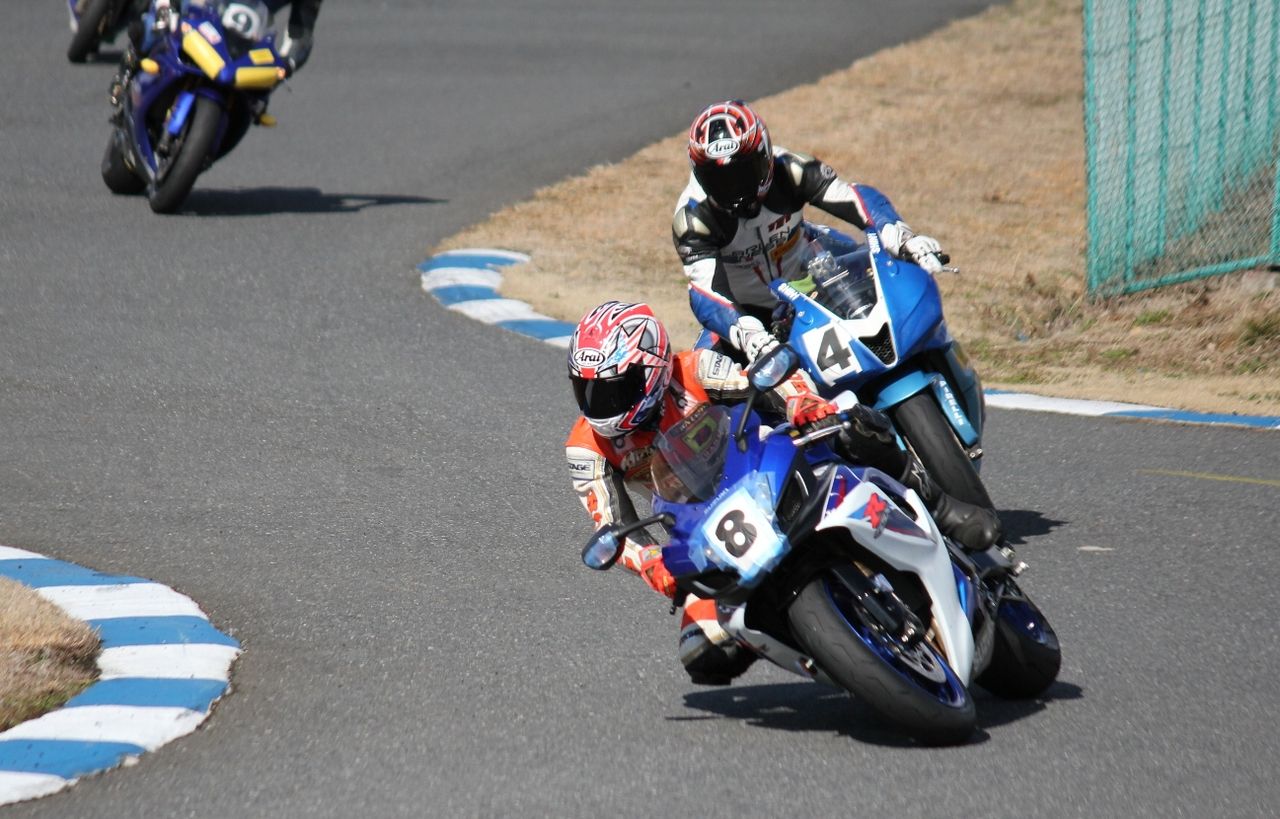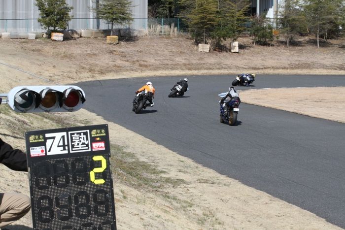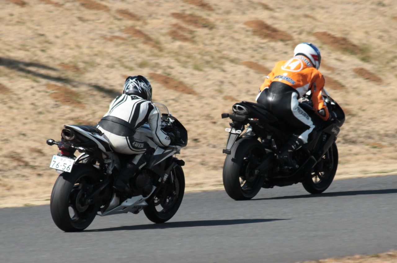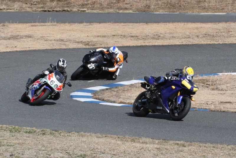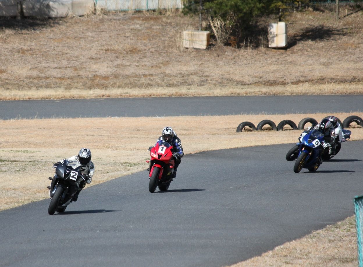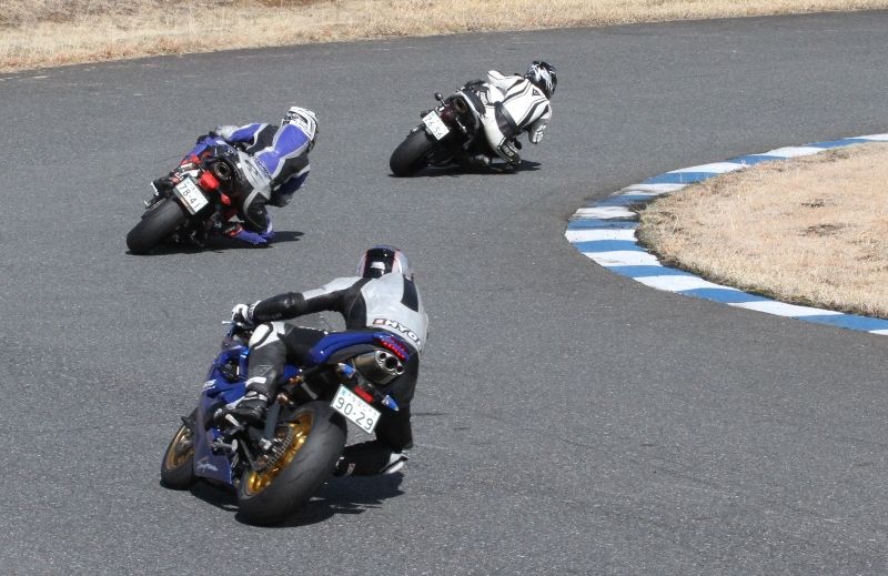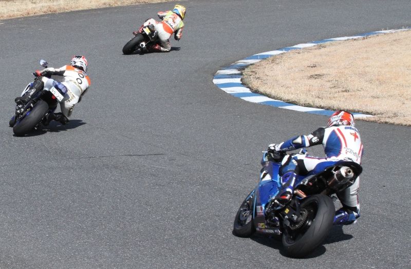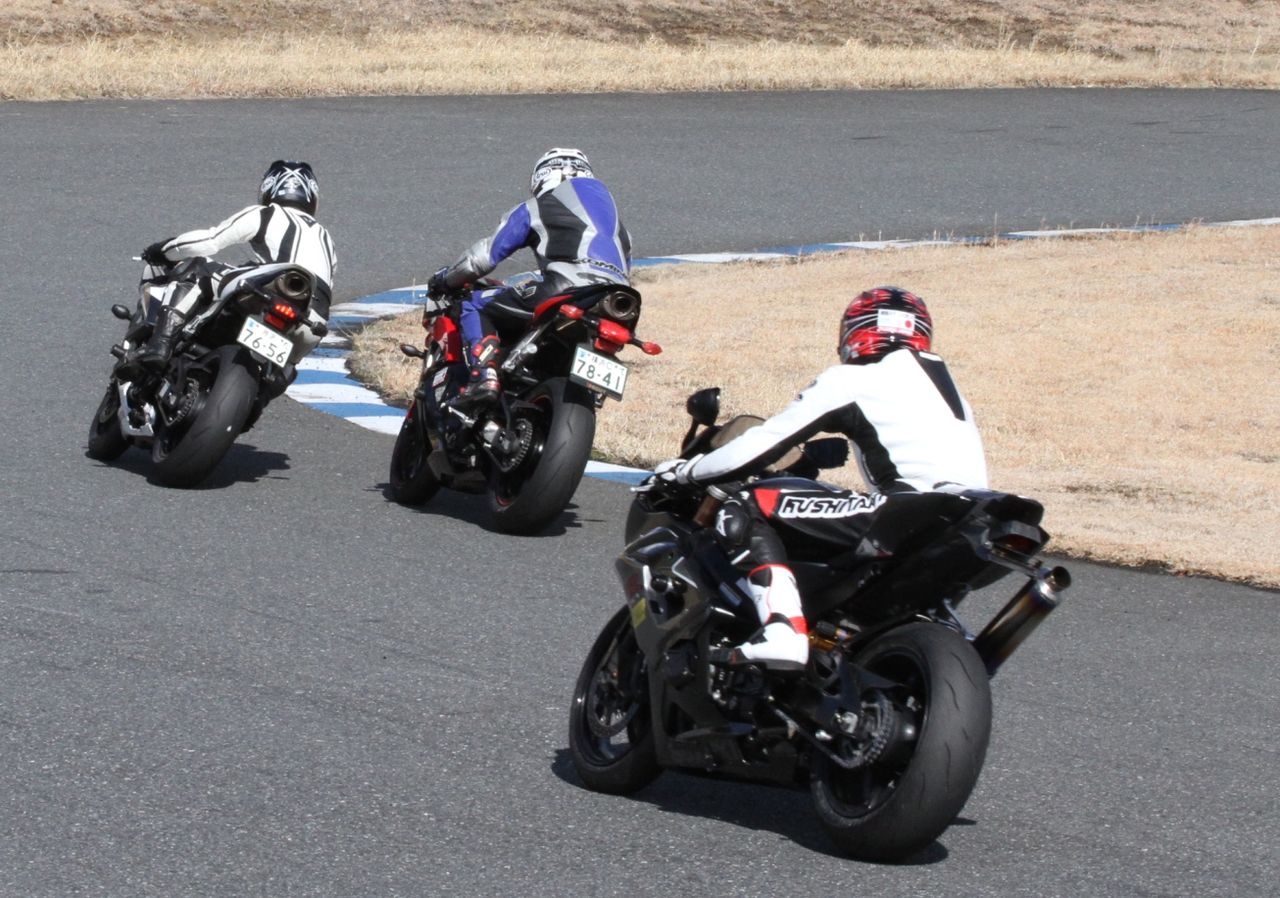 R1の八木を筆頭に、CBR250RRの樽井、そしてZX6Rの豊山と続く。